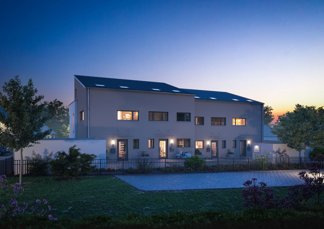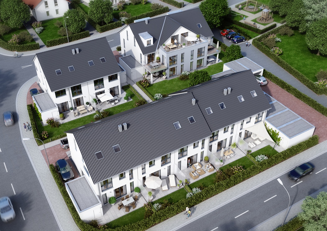 Hier sind neben einem Mehrfamilienhaus mit sechs Wohneinheiten auch zwei Doppelhaushälften sowie fünf Reihenhäuser entstanden.