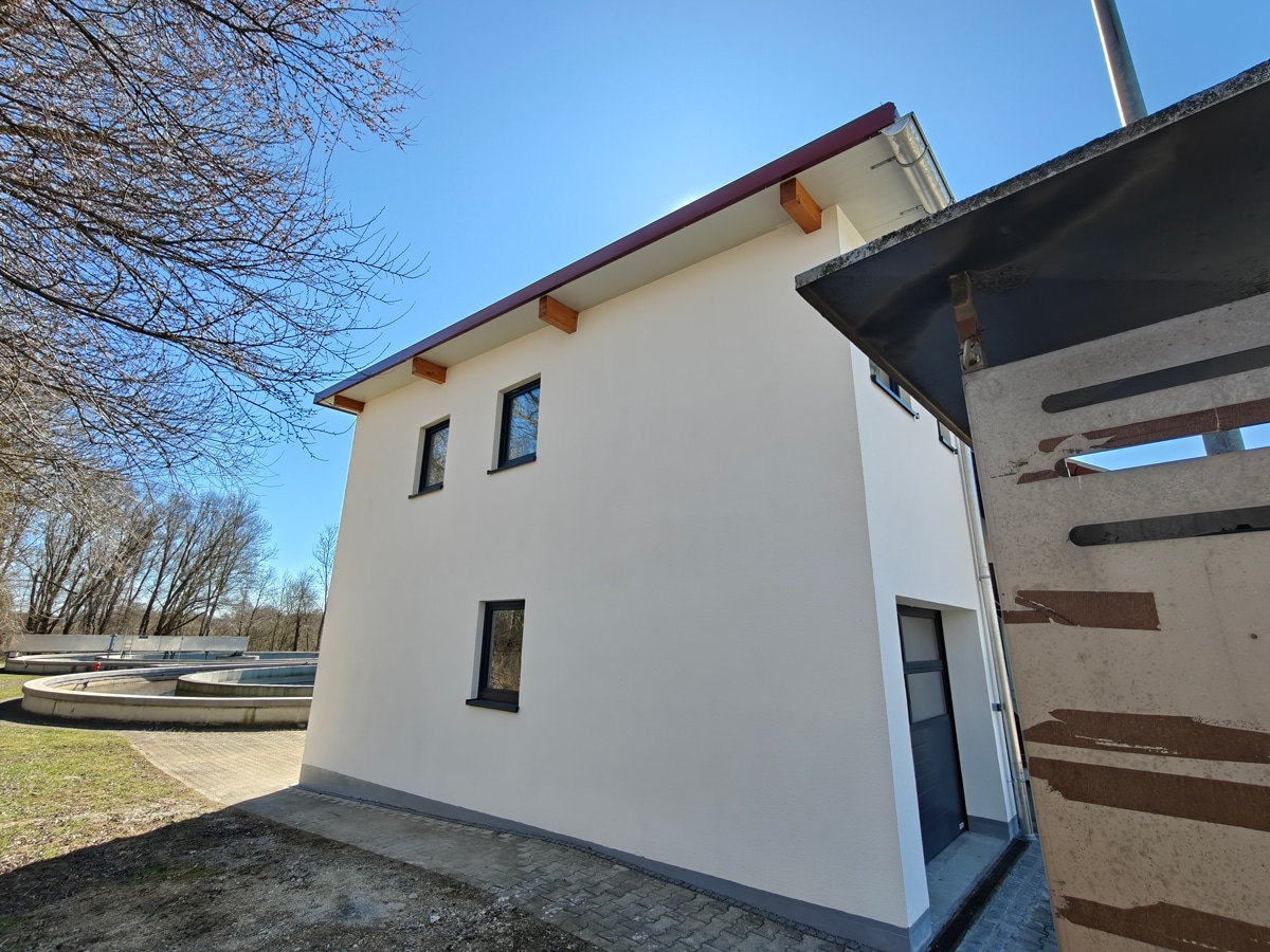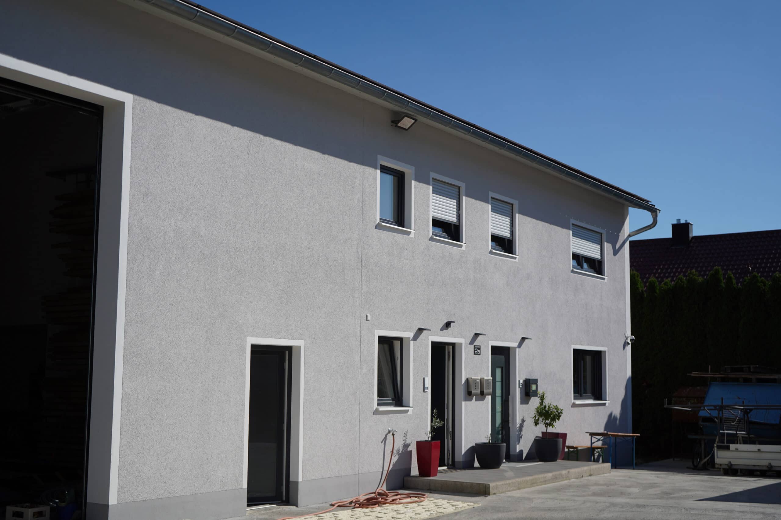 Im Jahr 2021 begannen wir mit den Planungen für die neue Firmenzentrale eines Bauunternehmers aus Dasing. Die Anforderung waren vielfältig: So sollten im neuen Gebäude mehrere Nutzungen untergebracht werden: Eine Lagerhalle mit 400 qm Nutzfläche, mehrere Büroflächen samt Aufenthalts-, Umkleide- und weiterer Nutzräume plus Empfangsbereich und zwei Wohneinheiten als Betriebswohnung für Angestellte.